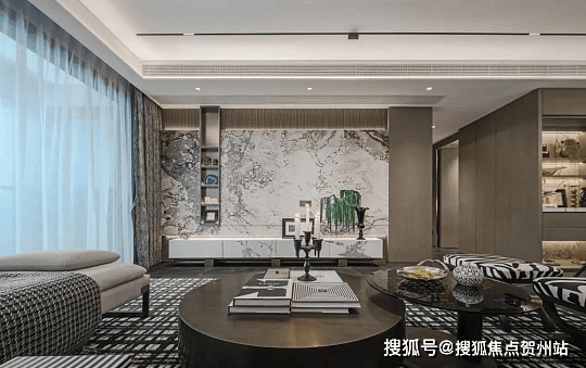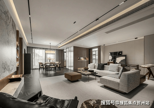 全屋高配日立中央空调、无主灯磁吸轨道系统,客厅定制岩板背景墙,卧室铺设多层实木板,质感拉满。