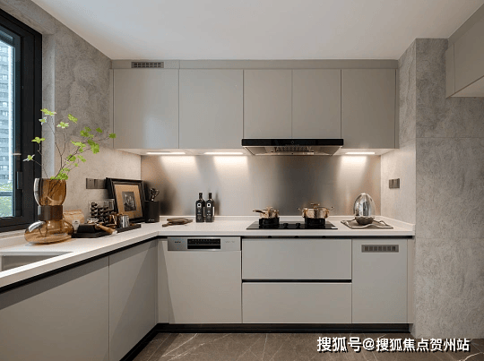 厨房搭载欧洲进口古洛尼三件套(含 16 套烘干洗碗机)、弗兰卡水槽,配感应式油烟机与松下凉霸,烹饪体验升级。