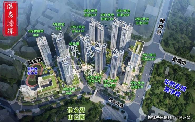 这次准备推售百合世纪广场二期(B-02地块),总占地面积约3.6万㎡,总建筑面积约27.03万㎡,计容建筑面积约19.38万㎡,容积率5.38,绿化率40%,共由3栋7个单元组成,总高是31-48层的住宅,其中1栋1单元住宅42F,1栋2单元住宅47F,2栋1单元住宅46F,2栋4/5单元住宅48F,3栋1/2单元住宅31F,另外2栋2单元公寓30F,2栋3单元商务办公楼22F,4栋是1所九班制幼儿园。