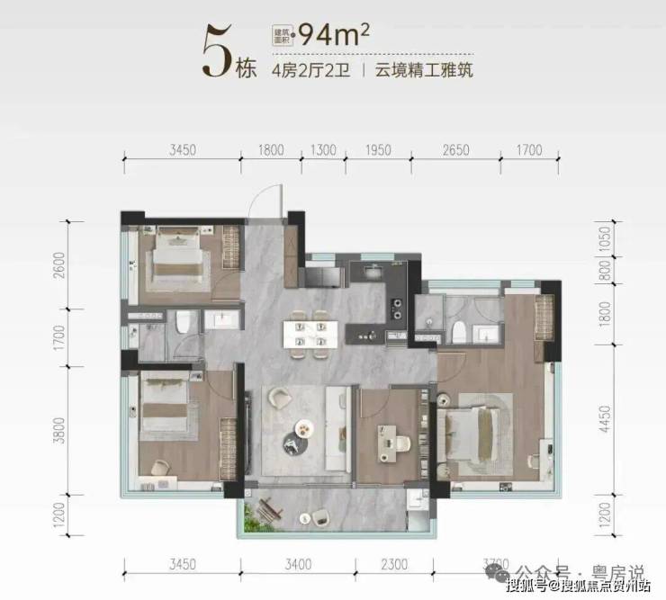 无界大横厅 四房(远超常规90㎡户型)
