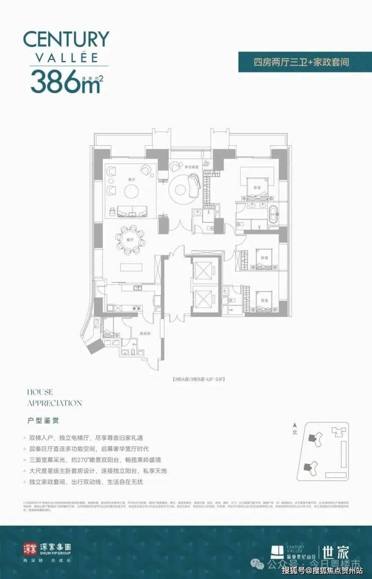 深业世纪山谷世家大平层住宅出售,销售户型233平米,280平米,386平米三至四房和420--1080平云端复式户型