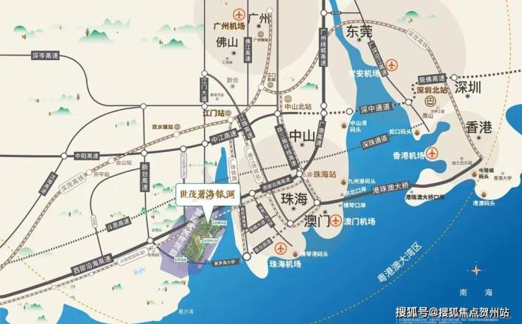 政府擘划银湖湾滨海新城千亿配套,港珠澳大桥西延线、黄茅海跨海大桥、珠西枢纽。黄茅海大桥全长10.5公里,预计2024年年底通车,是大湾区重要交通枢纽,一桥连通珠海江门,30分钟到珠海,畅享1h港澳珠生活圈。
