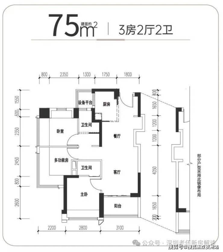 ● 75平3房2厅2卫:真正的同等面积多一间房,还多一间卫生间!