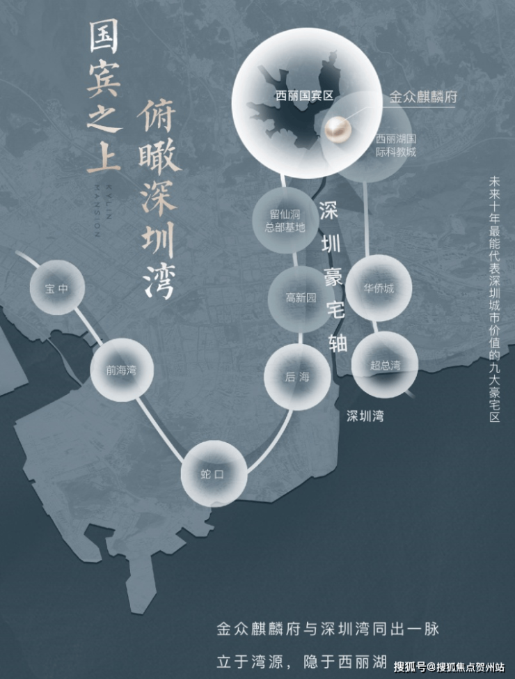 圈层-国宾资产 精英云集。背靠资本市场学院,占位西丽湖国际科教城,毗邻西丽高尔夫球场,同地块住宅麒麟公馆“全深圳最高学历小区”谈笑进阶高知圈层社交场。