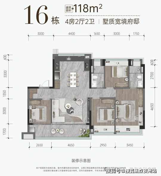 户型价格:主推建面约 92-118㎡三至四房高层和建面约 129-141㎡四房双套卧洋房,得房率高达 100%-110%。