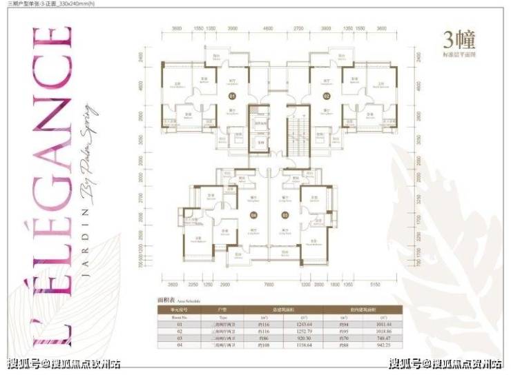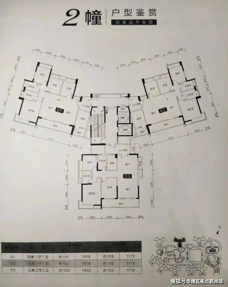 01、02:建筑面积141㎡、东南朝向、四房两厅两卫