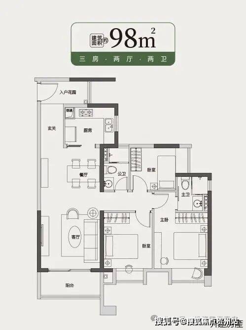 【省心精装交楼 — 🙆98㎡三房户型】