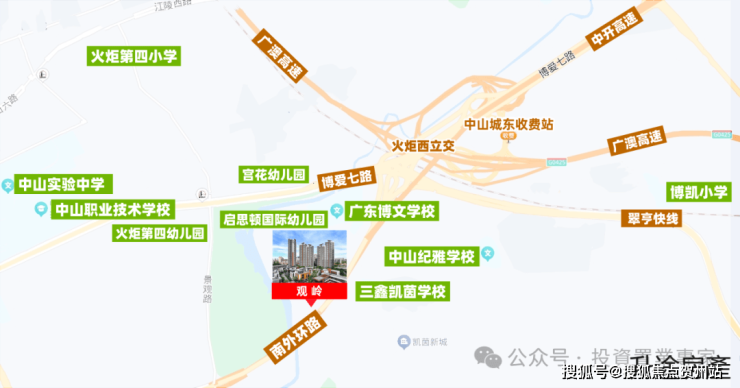 「观岭TheVista」地处中山核心中轴交通要点,毗邻博爱路,背靠南外环,临近翠亨快线。