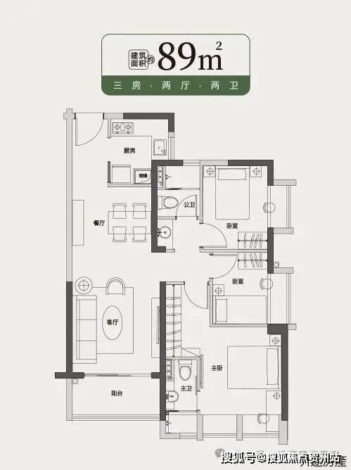 【实用满分— 👩👨89㎡三房户型】