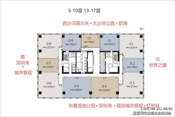 位处深湾 CBD 核心、不用太高楼层,就能眺望红树湾或华侨城湿地公园。项目是神州数码集团总部200米高双塔其中的公寓部分,有空中展示中心、极具艺术感的一线风景样板房。