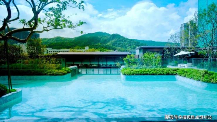 无边际透明景观池堪称点睛之笔,跃入其中,远方将军山朦胧如画,近处园林绿意触手可及,畅游仿佛悬浮于自然之中。