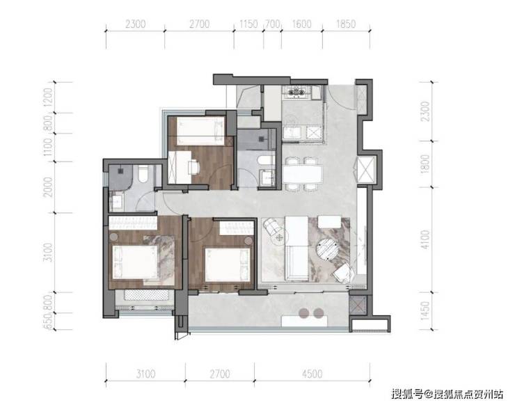 1、建面约88㎡ 三房两卫 | 青年精英首选: