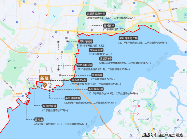 深圳湾沿线片区豪宅分布图(图片转自深圳壹地产)