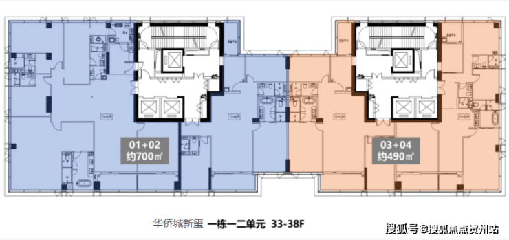 华侨城新玺T1栋一、二单元 33-38F 490㎡5-1房3厅5卫, 700㎡6+1房3厅6卫