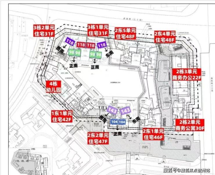 这次准备推售百合世纪广场二期(B-02地块),总占地面积约3.6万㎡,总建筑面积约27.03万㎡,计容建筑面积约19.38万㎡,容积率5.38,绿化率40%,共由3栋7个单元组成,总高是31-48层的住宅,其中1栋1单元住宅42F,1栋2单元住宅47F,2栋1单元住宅46F,2栋4/5单元住宅48F,3栋1/2单元住宅31F,另外2栋2单元公寓30F,2栋3单元商务办公楼22F,4栋是1所九班制幼儿园。