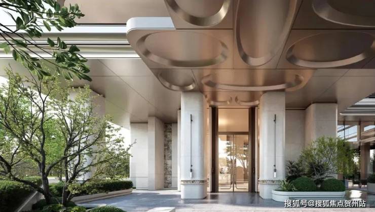 「后海招商玺」车行大门做了殿堂级落客区,设有天幕和水景,非常具备归家仪式感。