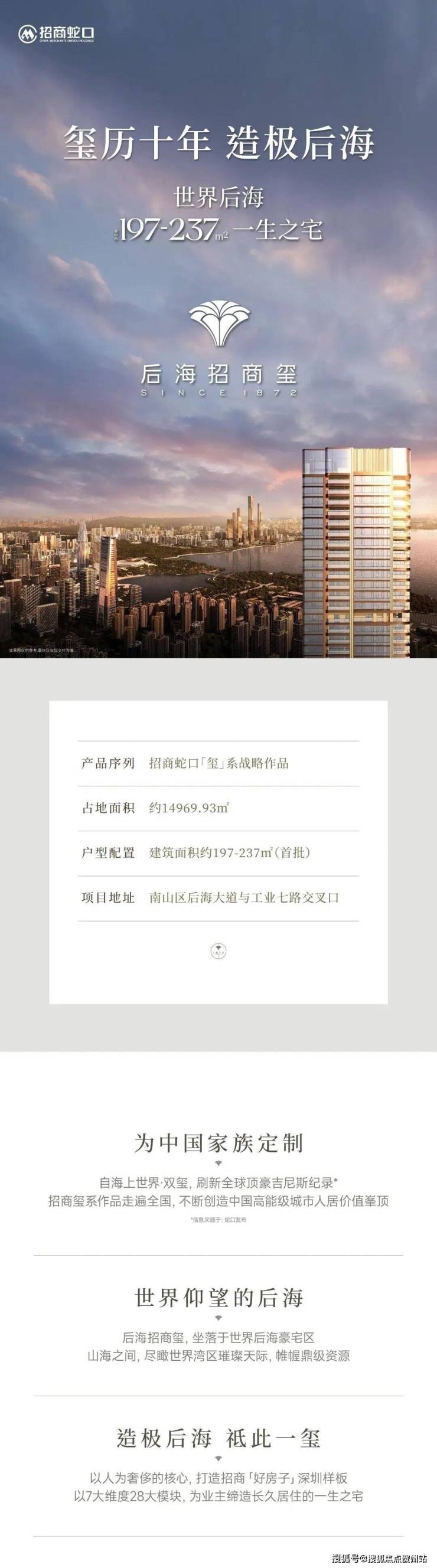 「后海招商玺」为招商玺系升级代表作,在产品品质上势要突破自我,尤其是公区车库,都是相当划时代的。商品房是四房大平层起步,作为新晋豪宅。地处深圳湾和蛇口交汇,会吸引不少原深圳湾、蛇口等地缘购房者的置换需求。
