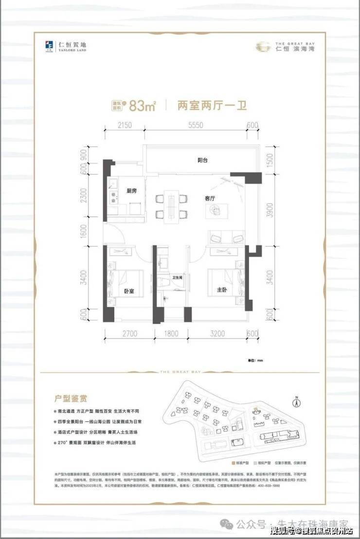 建面约83㎡ 度假式套房 奢适两房