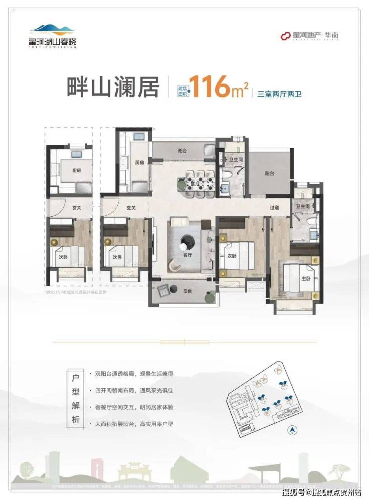2、四居室:建面约101㎡、116㎡、126㎡(均为四房两厅两卫),另有139㎡大户型;