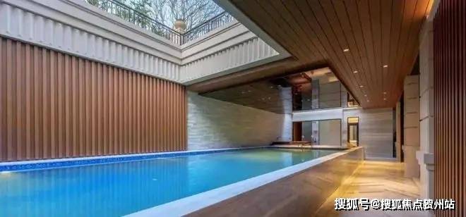 并且地下室层高约4.5米,总面积450㎡,三连厅设计,庭院处可以装得下一个13米长的游泳池,很有巨邸豪宅的气场。
