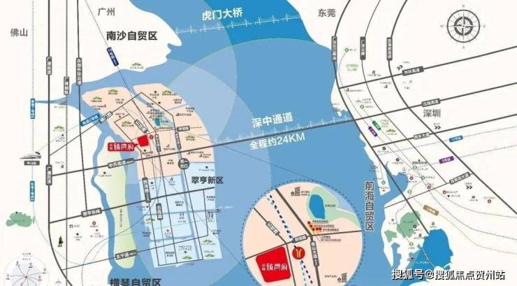 地铁与交通:距深中通道出入口约 1.5km,30 分钟直达深圳前海;目前无已开通地铁,片区规划广州地铁 18 号线香山站、预留深圳地铁 33 号线接驳口,未来跨城地铁出行便捷;周边有翠亨快线、南朗大道等主干道,小区设 5 元社区跨城巴士,日常通勤与跨城出行高效。