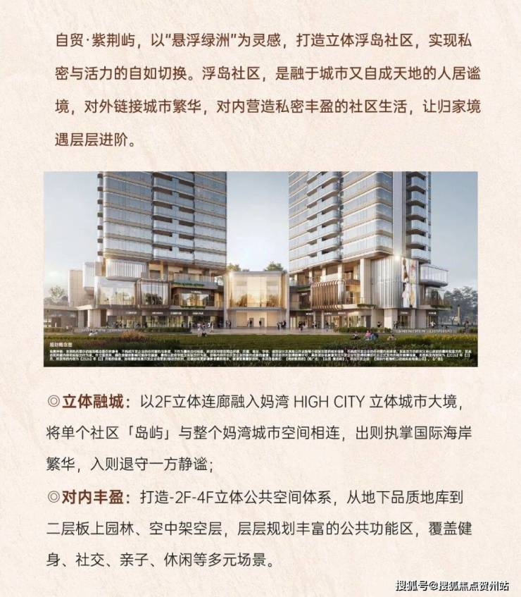 打造立体浮岛社区,2F立体连廊融入妈湾立体城市,出则繁华、入则静谧;-2F-4F立体公共空间,覆盖健身、社交、亲子等多元场景,居住体验拉满。