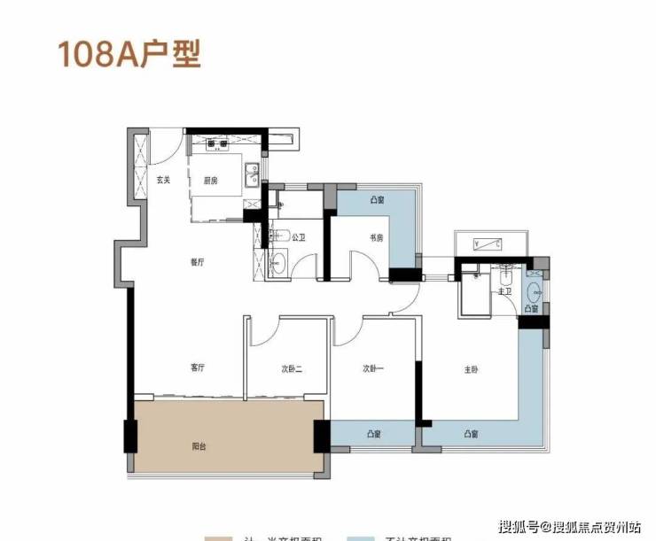 108㎡的4房2厅2卫,A户型,设计的是竖厅格局,进门入户玄关,客厅3.45米开间,LDKB一体化,S墙设计预留冰箱卡槽位,四开间朝南,动静分区,主卧+1个次卧270度大飘窗,客厅连接次卧出6米长大阳台,4个卧室分别做到了主卧16.4㎡/次卧11.2㎡/次卧7.84㎡/次卧6.25㎡(包含墙体飘窗),U型厨房,卫生间干湿分离,得房率约:106%(包含赠送),东南朝向。