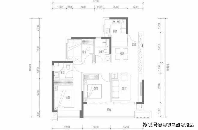 98㎡竖厅正规三房两厅两卫,6.5M景观大阳台贯穿次卧,采光和休闲舒适度高。