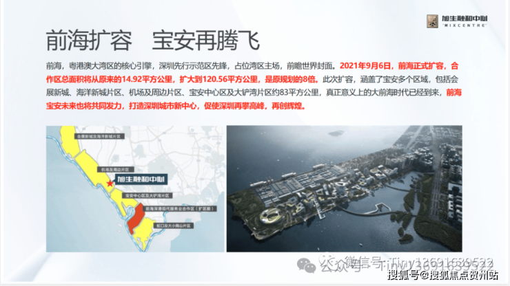 2021年9月6日,前海正式扩容,合作区总面积 将从原来的14.92平方公里,扩大到120.56平方公里,旭生融和中心正式被纳入前海,加速宝安资产价值跃升!