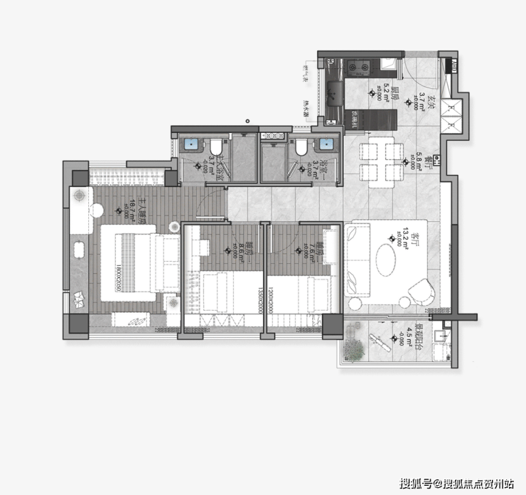 坦白讲,这两年户型迭代十分迅猛,尤其在90-120㎡赛道上最为内卷,开发商已经很难再做出重大突破。