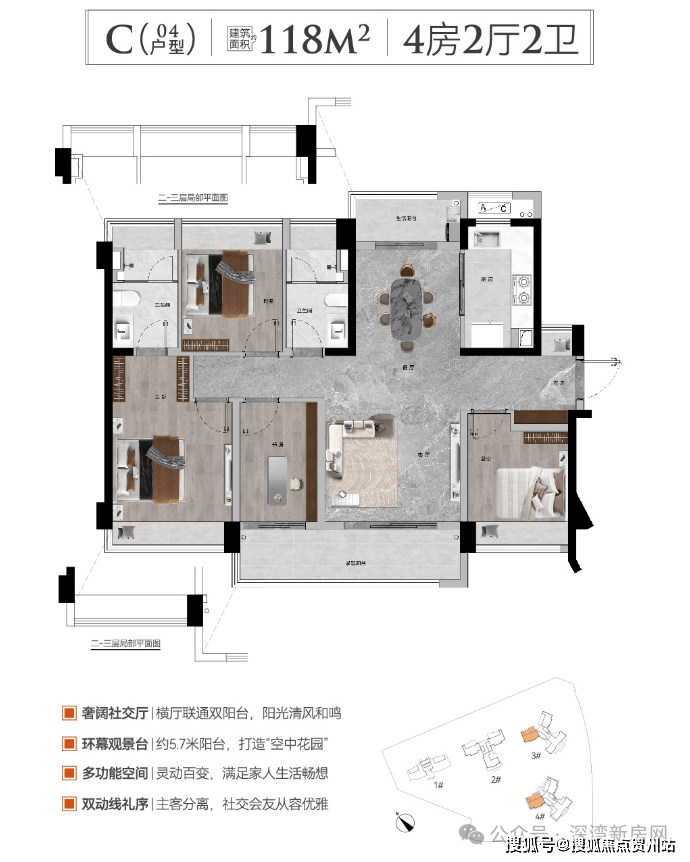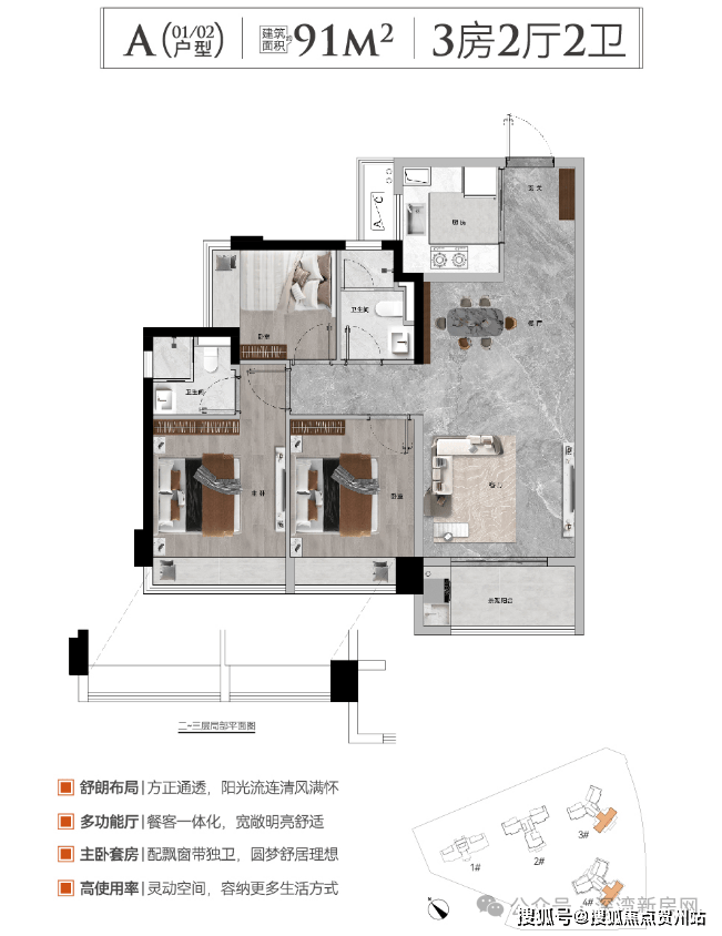 户型产品:建筑面积约91-173㎡三至四房