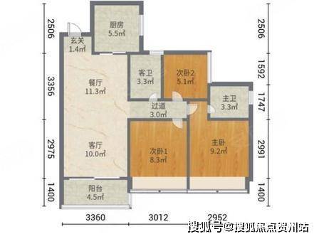 华发珠海湾88㎡三房两厅两卫户型图