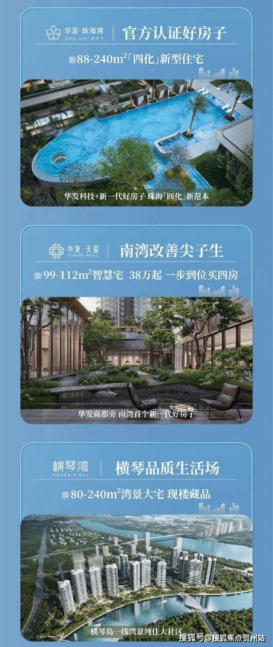 基本信息:项目位于珠海市香洲区唐淇路 1295 号,地处深珠合作示范区与珠西未来科学城双核心叠加区。占地约 4.5 万㎡,总建面 16 万㎡,规划 10 栋高层住宅,共约 1300 户纯商品房,容积率低至 2.7,绿化率 35%。它是珠海首个第四代住宅、全球首个无人机配送社区,也是 “华发科技 + 新一代好房子” 示范项目。预计 2027 年底精装交房。