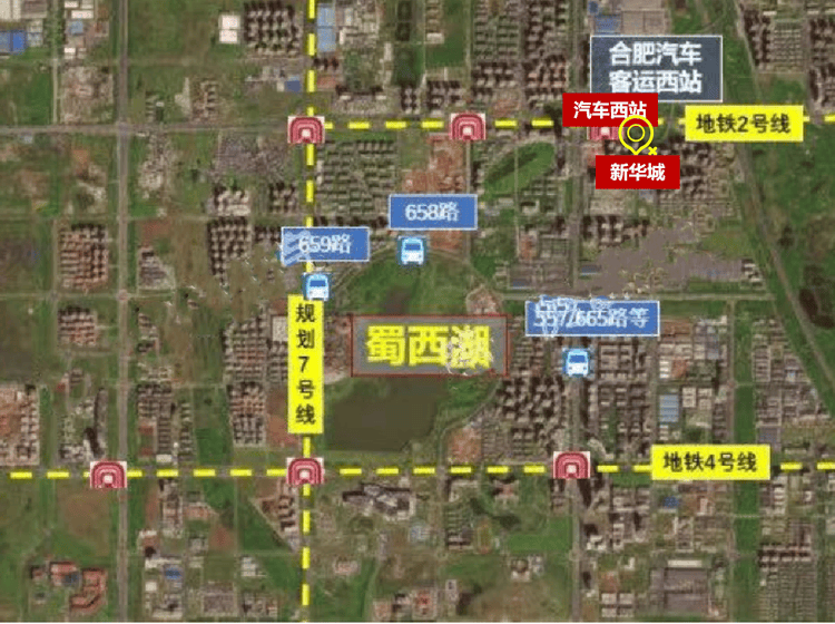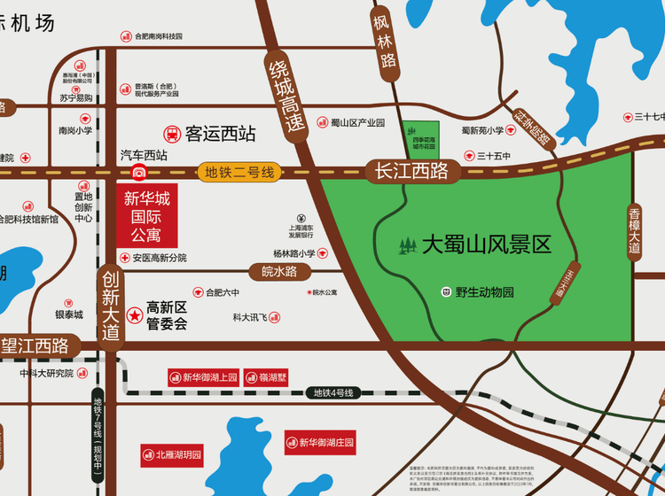 景观:蜀西湖公园、大蜀山、北侧规划公共绿地广场、合肥科技馆等