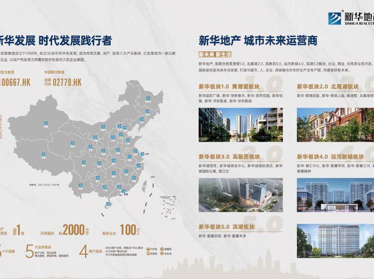新华地产成立于1995年,定位“城市未来运营商”,以国家城市群发展战略为导向,深耕布局长三角、环渤海、大湾区经济圈,成就TOP系、星耀系、成就系、成长系、未来系五大产品系,为中国家庭创造未来生活场景。