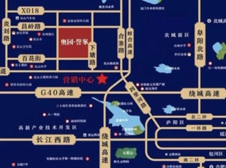 其他:项目南面即是市政建设的800亩吴王踪迹主题乐园、董铺国家湿地公园、万亩“桃花源、三国遗址公园、崔岗艺术村、王大郢音乐小镇、三十岗生态农业旅游区、桃蹊水果农场、中国非物质文化遗产园等人文自然生态景观。