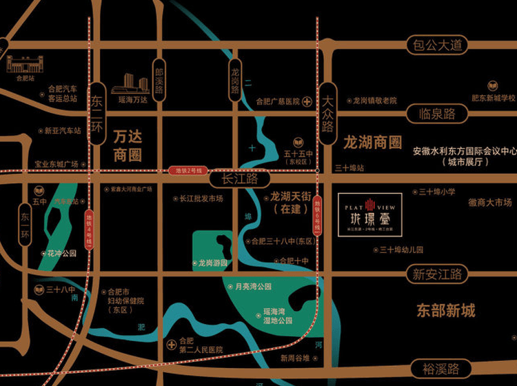 金鹏·珑璟台位于合肥东部新 核心区瑶海区域龙岗版块三十埠桥, “安徽 路”长江路, 2号线,6号线(规划中)双轨交汇 ,瑶海万达广场, 龙湖天街, 禹州 广场三大商圈近在咫尺,出则畅享便捷生活,拥享一城繁华。 项目以新亚洲风格为规划理念,以大景观,多面宽,精细节为筑造风格,以庭院和中式美学传承归家礼序。着力构建6万方新亚洲轻奢公馆社区。