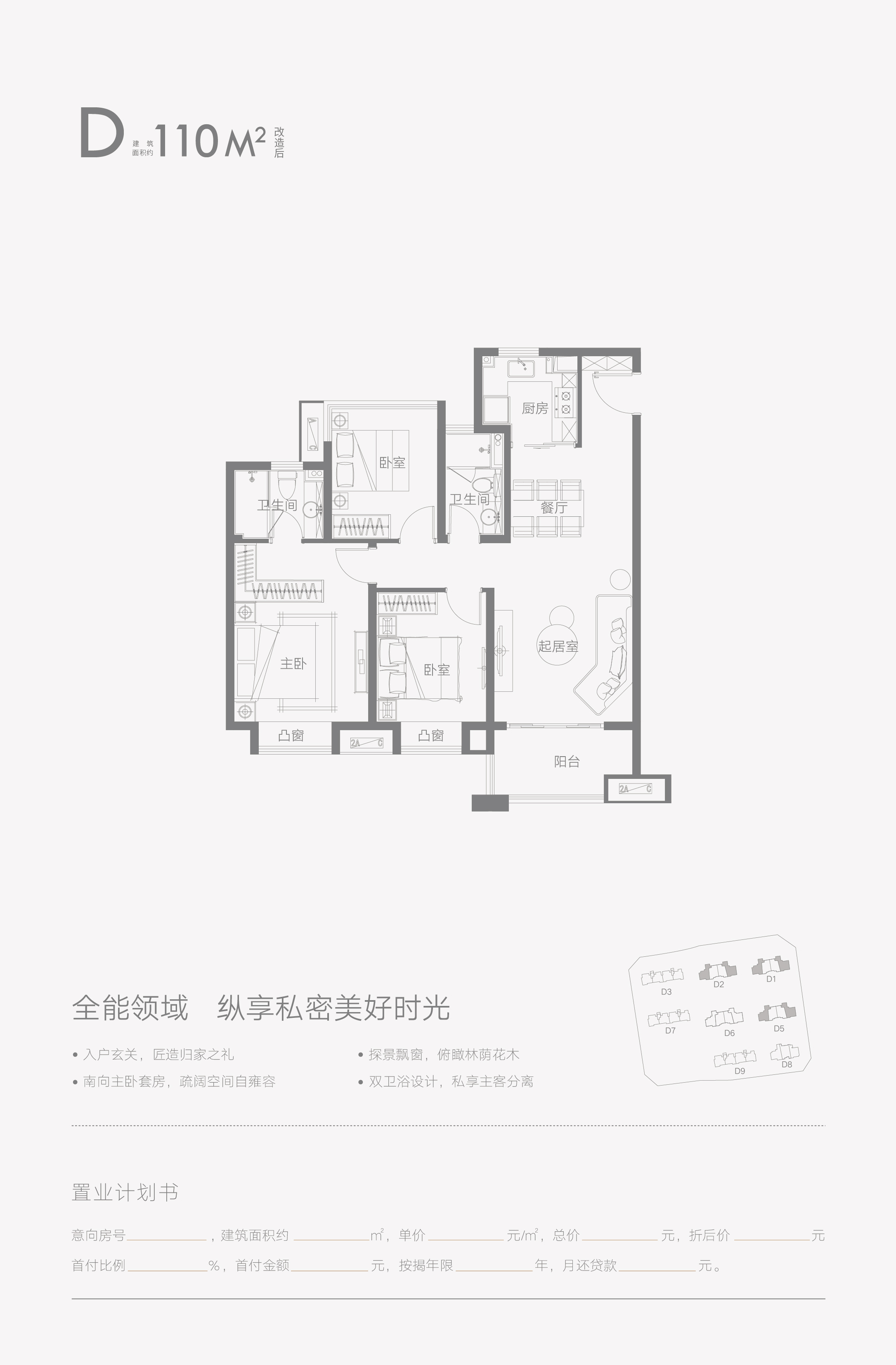 在售 南北通透 户型方正 全明格局 客厅朝南 主卧朝南 主卧带卫 飘窗