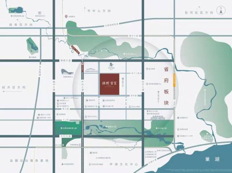 其他:合肥中央公园(规划中),融创秀场(规划中),滨湖会展中心,安徽省地质资料馆