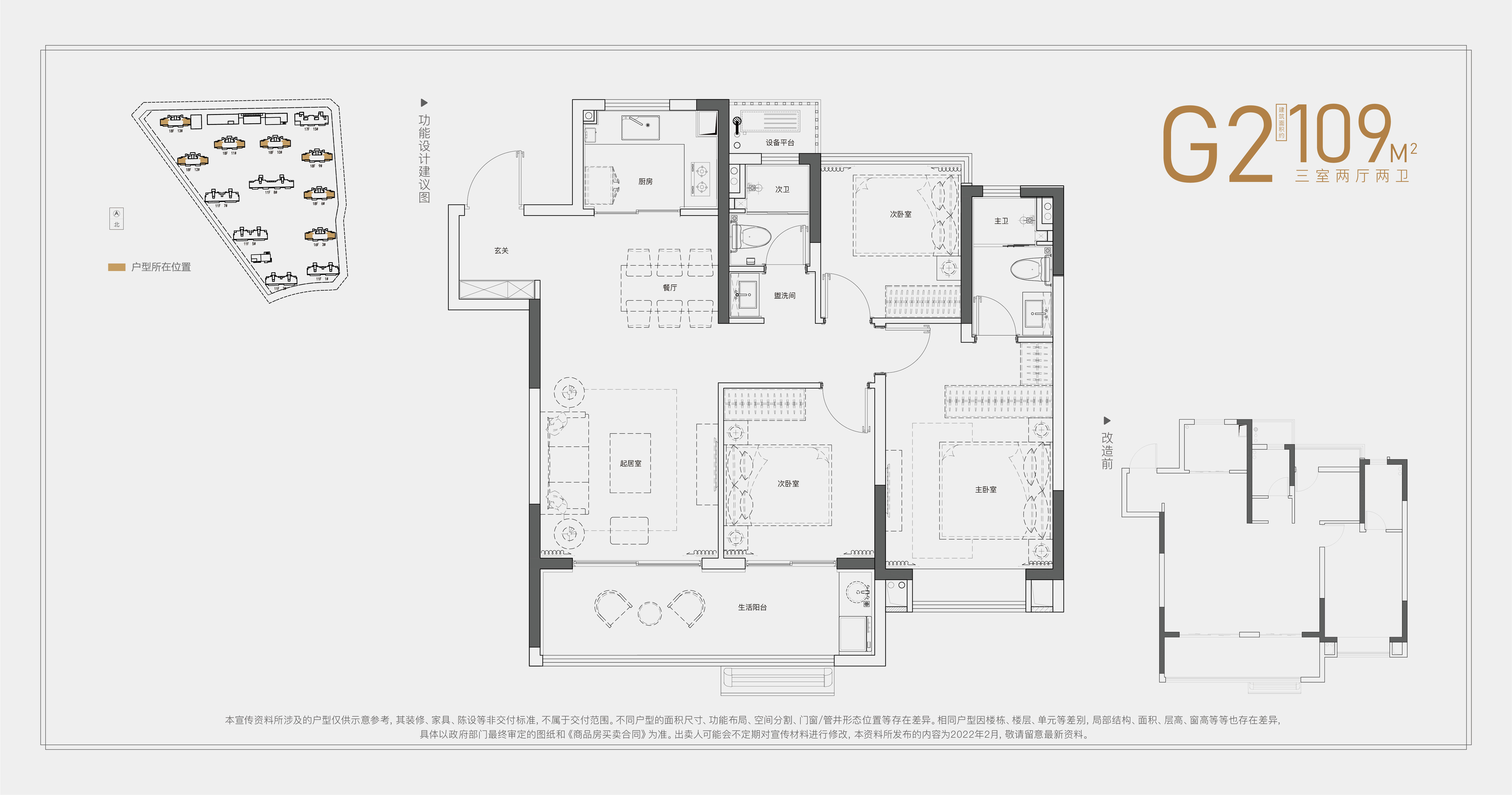3室2厅2卫-高层三室两厅两卫109㎡户型图
