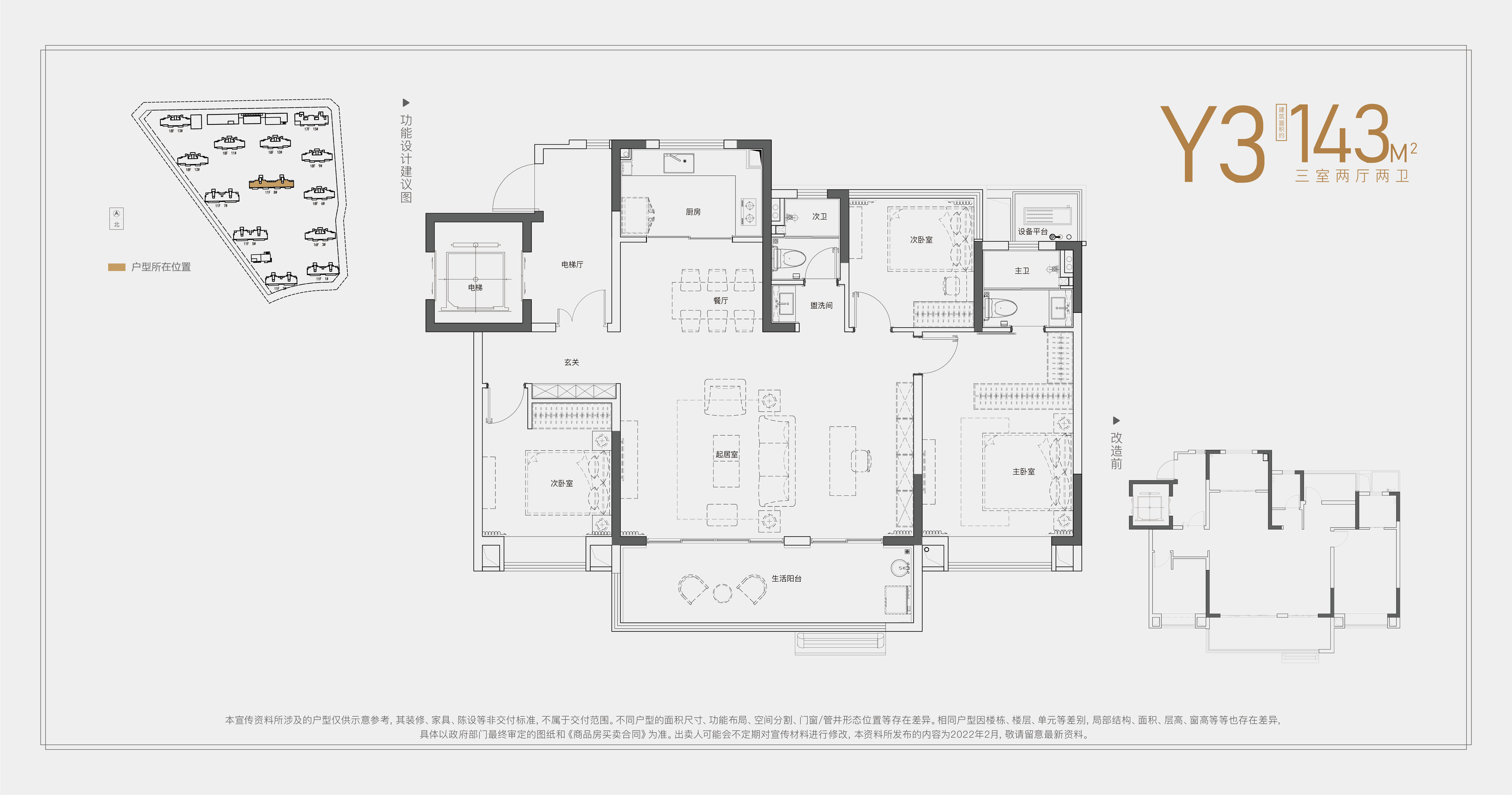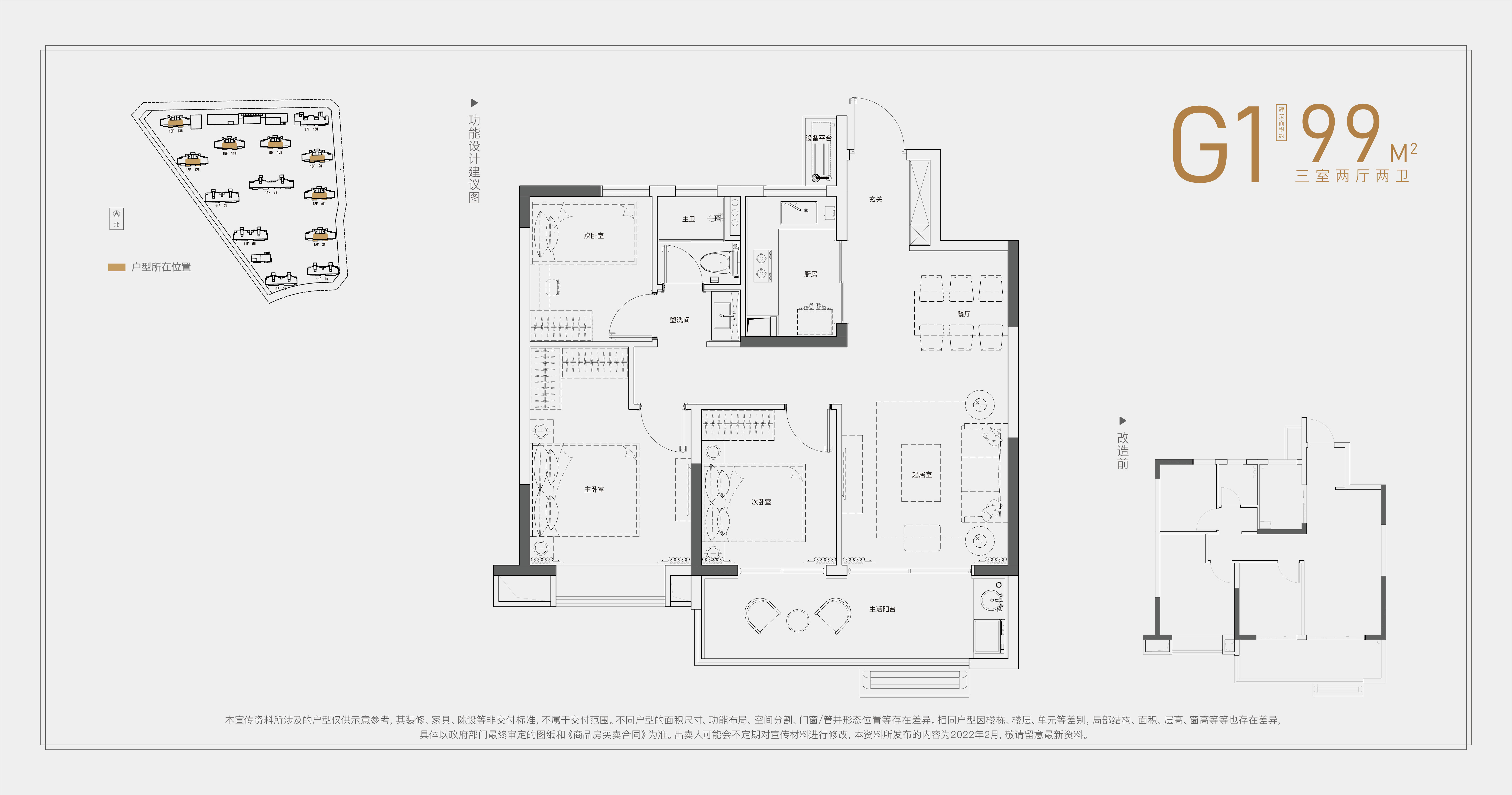 3室2厅2卫-高层三室两厅两卫99㎡户型图