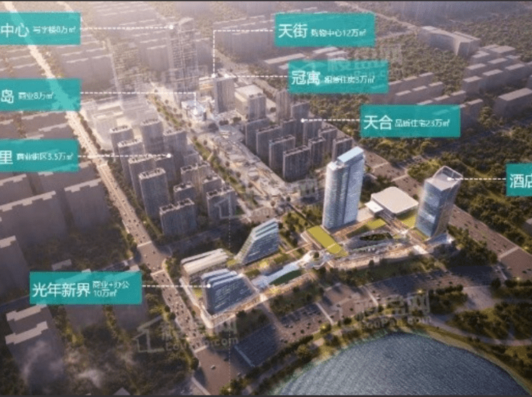 根据规划,地块内拟建一座约160米写字楼,一座约10万平方米购物中心,一栋约130米酒店,一座约1.2万平方米会议中心以及一条约2万平方米的商业步行,以及规划住宅。