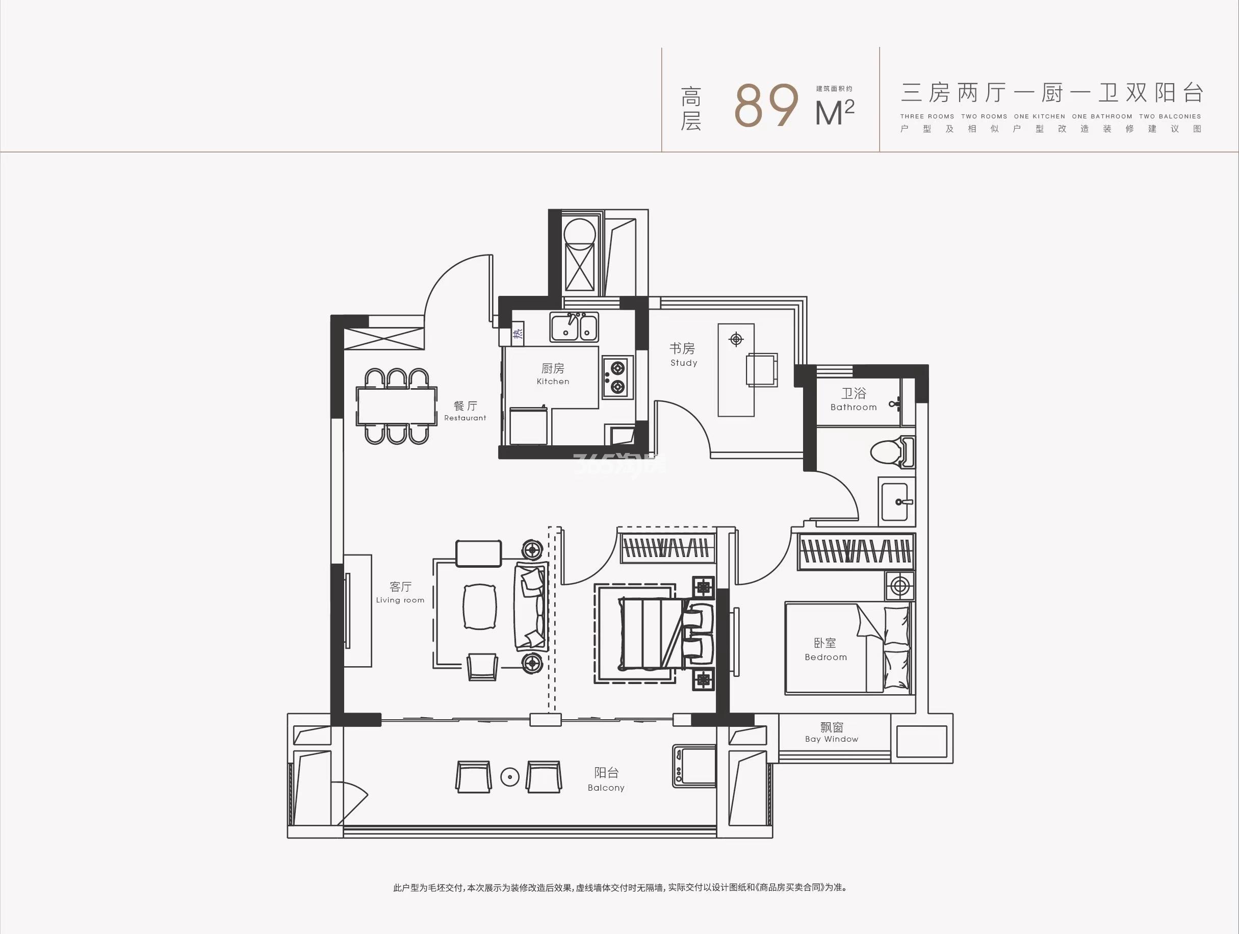 3室2厅1卫-89㎡户型-3室2厅1卫