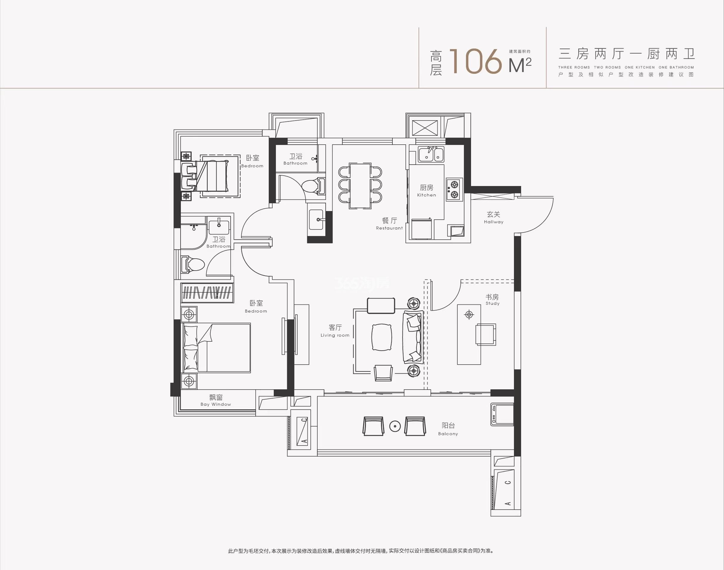 3室2厅2卫-106㎡户型-3室2厅2卫