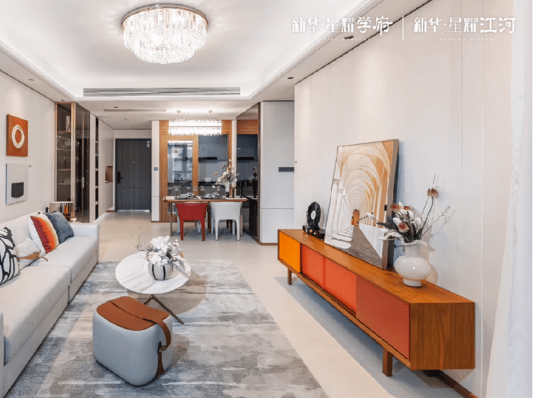 - 108㎡三室两厅一卫(刚需入门首选):南向三开间达11.2米,客厅衔接7.5米双联阳台,中高楼层可直览运河生态廊道远景;主卧带270°全景飘窗拓展空间,U型厨房搭配方太嵌入式三件套,新华定制收纳系统含书籍、杂物分层区,适配年轻家庭与通勤需求。