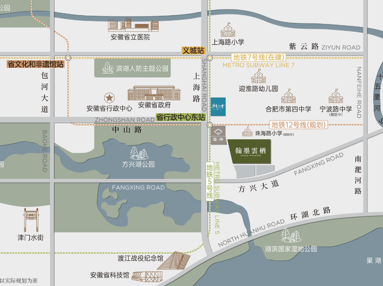 合肥翰墨雲栖位于蜀山区小庙镇(运河新城核心区),交通条件正在快速完善中,主要出行方式如下: