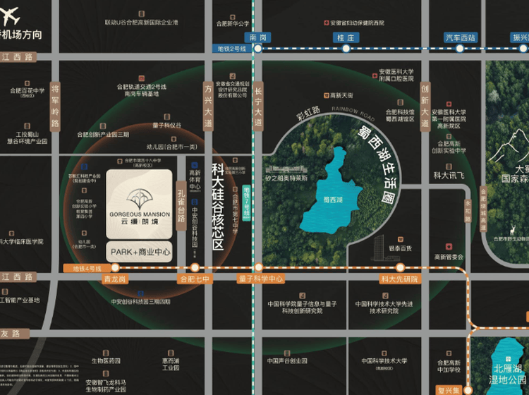 开发理念:由合肥轨道开发,秉持 “品质出行引领者,城市空间开拓者” 的企业愿景,率先探索 “PARK+TOD” 开发新模式,以地铁 4 号线为底盘,融合活力商业、城市绿带、溪谷社区等,为高知人群打造理想居所。