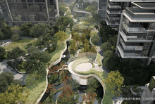 社区规划:携手 GOA 大象设计等一线团队打造。以约 450m “风之溪谷” 景观溪谷化设计串联社区,两侧崖壁隔绝喧嚣,串联起森谷绿洲、宠物乐园等场景。南大门以 “生命之树” 为灵感,“华盖” 将主入口与商业串联。溪谷会所植入酒店大堂、日咖夜酒等 4 大生活场景,包含泳池、瑜伽室等 11 大功能模块。