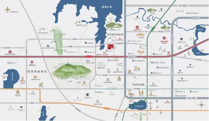 金隅中交山湖云筑项目位于樊洼西路与植物园南路交汇处,不仅拥有大蜀山的美景,还背靠董铺湖,周围有植物园与四季花海,为居民提供了静谧悠然的自然生活环境。同时,项目地处蜀山主城区域,周边发展成熟,配套设施完善,包括长江西路、西二环、地铁二号线等交通设施,以及金湖小学、金湖中学、拓基广场、大铺头商圈和中科大一附院西区等教育、商业和医疗资源,满足居民多方面的生活需求,让人既能享受自然美景,又能体验到城市的便捷生活。