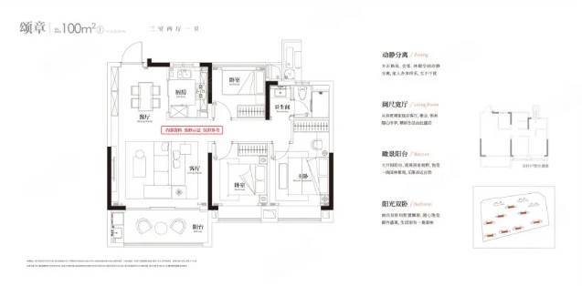 皖投云启华章花园的户型建筑面积大致在100-125㎡之间,主力户型包括3室2厅1卫的100㎡户型、3室2厅2卫的115㎡户型和3室2厅2卫的125㎡户型。100㎡的户型采用全明格局设计,三个卧室均朝南,适合两口之家或三口之家居住。115㎡的户型则采用方正格局设计,客厅朝南,客厅开间宽敞,可根据主人需求改造成不同的功能空间。125㎡的户型在设计上更加宽敞,南北通透,主卧为套房设计,兼顾生活感和隐私感。